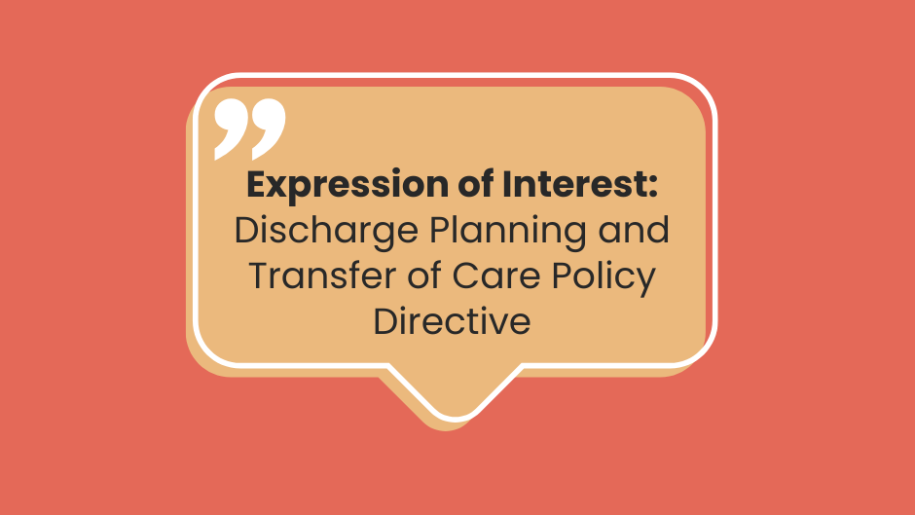 To express your interest in participating, fill in this EOI by COB Wednesday 13 May: https://www.surveymonkey.com/r/DischargePlanningTransferofCare